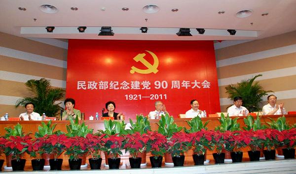 6月28日,民政部召开纪念建党90周年大会。部党组书记、部长李立国,部党组副书记、副部长罗平飞,部党组成员、副部长姜力,部党组成员、全国老龄办常务副主任陈传书,部党组成员、副部长孙绍骋出席会议,部党组成员、中央纪委驻部纪检组组长曲淑辉在会上为直属机关党员干部讲党课,会议由部党组成员、副部长窦玉沛主持。